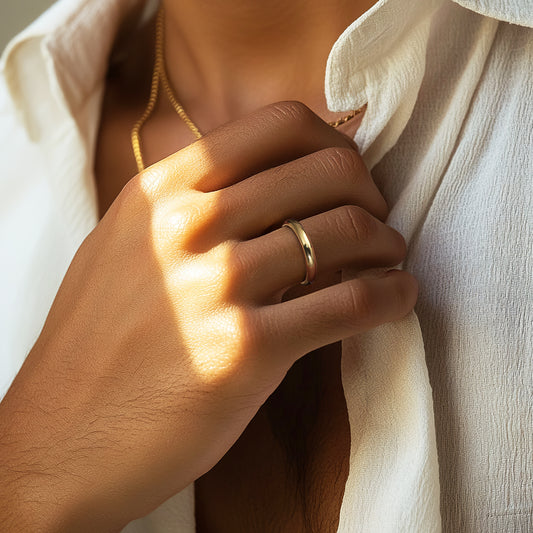 Discover waterproof gold rings—sleek bands and bold signets crafted for daily wear, hypoallergenic, tarnish-resistant and perfect for effortless, unisex stacking. You are Saint À Voir.